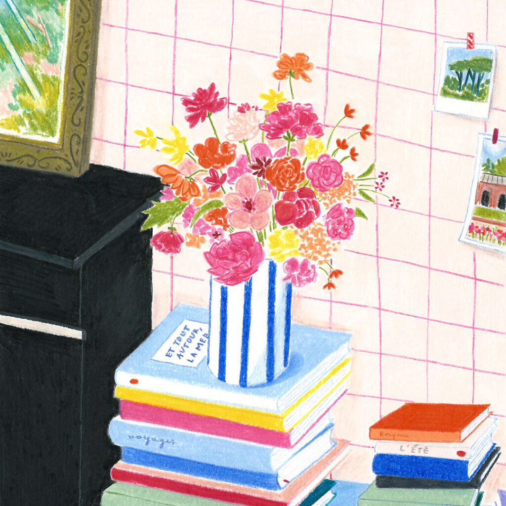 Format A4 – 21×29,7cm ; crayons de couleur sur papier Canson 200g ; 2025. Prix : 230€