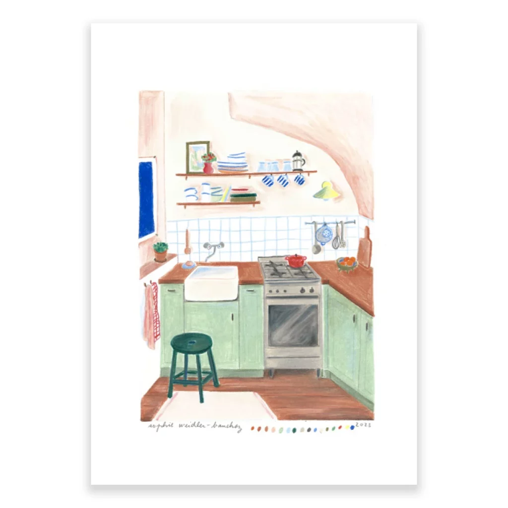Format A4 – 21×29,7cm ; crayons de couleur sur papier Canson 200g ; 2023. Prix : 280€