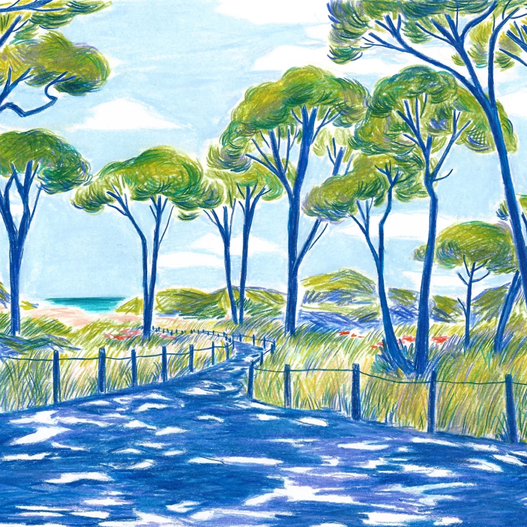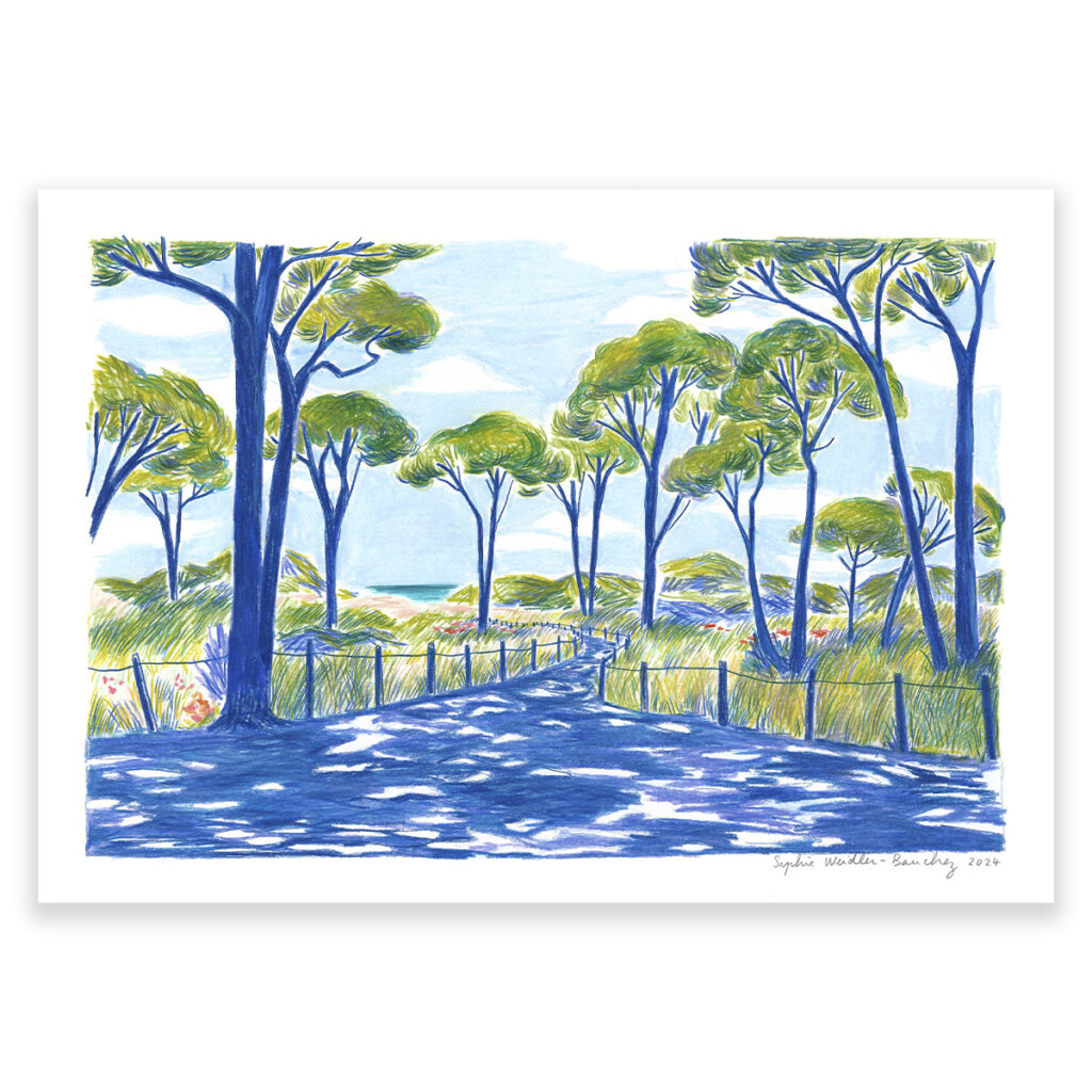 Format A5 – 14,8x21cm ; pastels à la cire sur papier Canson 200g ; 2023. Prix : 150€