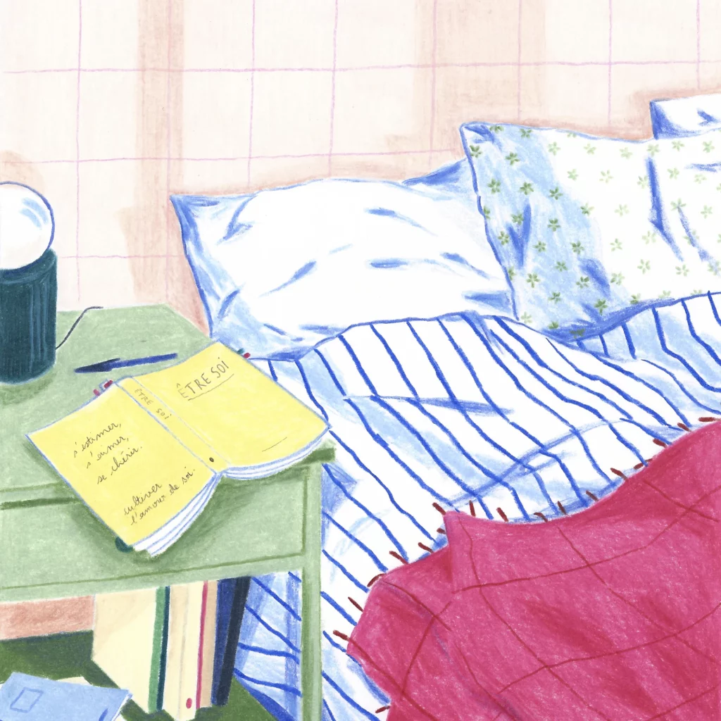 Format A5 – 14,8x21cm ; crayons de couleur sur papier Canson 200g ; 2025. Prix : 150€